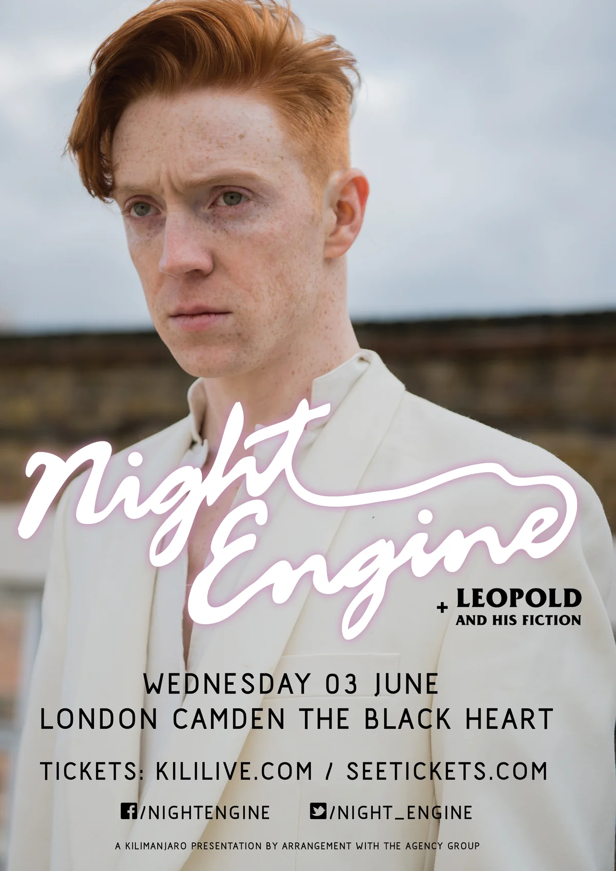NIGHT ENGINE Wednesday, June 3, 2015 7:00 PM 11:00 PM 19:00 23:00 Google Calendar ICS Kilimanjaro presents:Night Enginewith support fromLeopold and His Fiction
