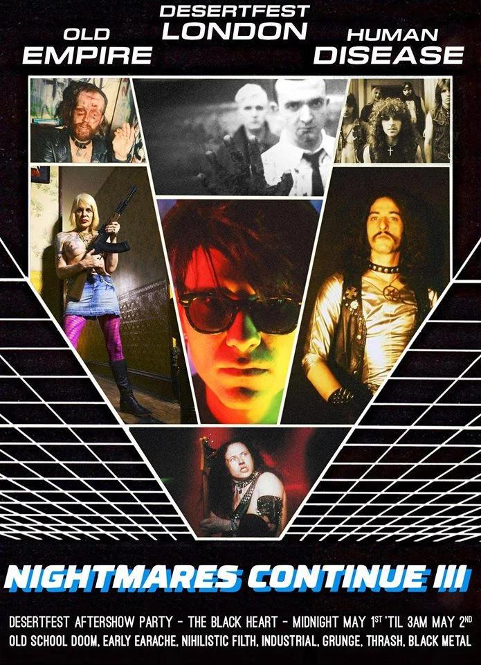 NIGHTMARES CONTINUE III After a full day of watching Godflesh, Blood Ceremony, Oranssi pazuzu, Necro Deathmort, Bast and Witchsorrow on the Old Empire stage at Electric Ballroom we will be throwing it into 5th gear with a final hoorah at The Black Heart. Hookah pipes, Wizards and Monster Trucks this aint, expect a full audio assault from the Old Empire and Human Disease DJs featuring the best in: Old School Doom (Saint Vitus, Pagan Altar, Witchfinder General) Early Earache (Napalm Death, Morbid Angel, Entombed) Industrial (Ministry, Throbbing Gristle, Coil) Grunge (Tad, Babes in Toyland, Seven Year Bitch) Nihilistic Filth (Eyehategod, Acid Bath, Indian) Thrash (Midnight, Nifelheim, Deathhammer) Black Metal (Absu, Leviathan, Mayhem)