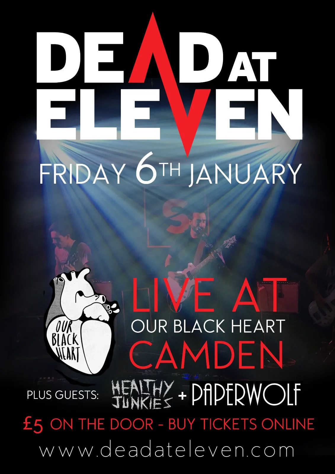 DEAD AT ELEVEN Friday, January 6, 2017 7:00 PM 11:00 PM 19:00 23:00 Google Calendar ICS Dead At ElevenHealthy JunkiesPaperwolf BUY TICKETS