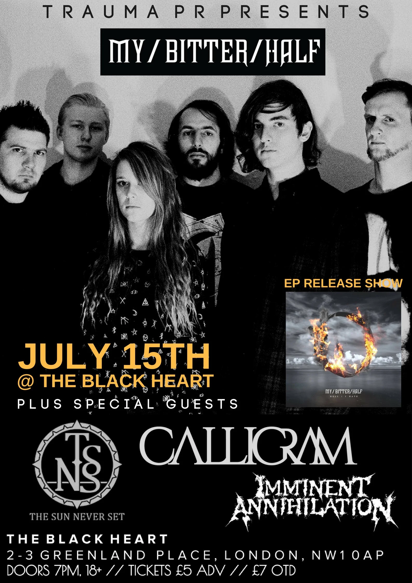 TRAUMA PR PRESENTS : MY BITTER HALF Saturday, July 15, 2017 7:00 PM 11:00 PM 19:00 23:00 Google Calendar ICS TRAUMA PR presents:MY BITTER HALFwith support fromCALLIGRAMTHE SUN NEVER SETSIMMINENT ANNIHILATION BUY TICKETS