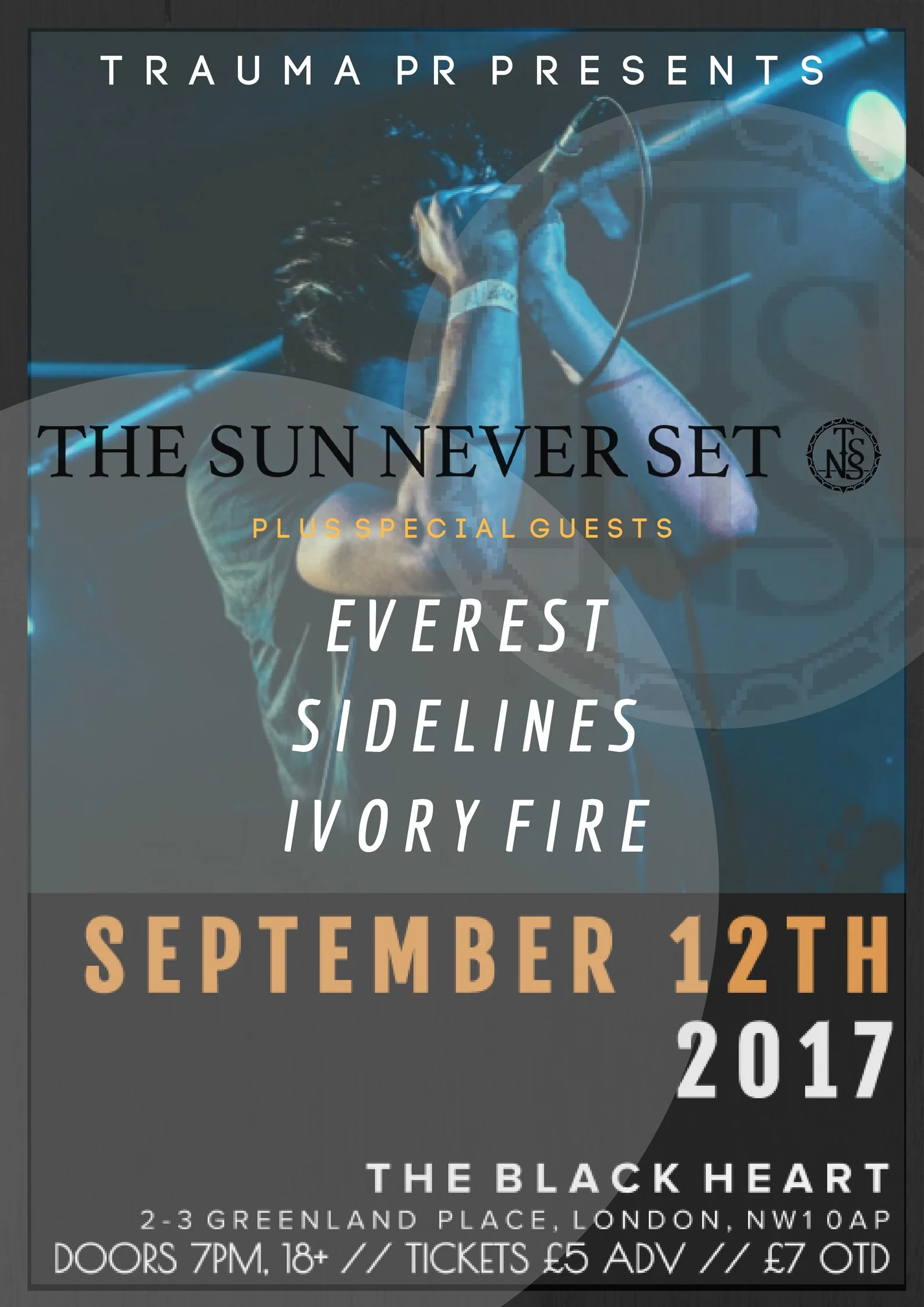 The Sun Never Set PLUS special guests Everest, Sidelines & Ivory Fire!