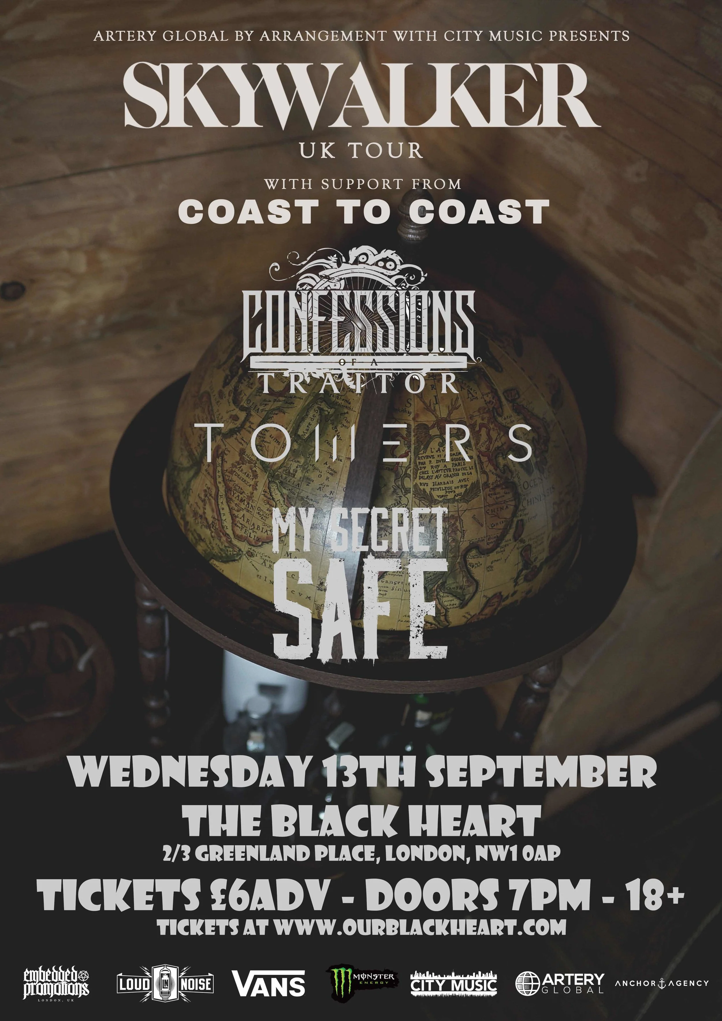 SKYWALKER Wednesday, September 13, 2017 7:00 PM 11:00 PM 19:00 23:00 Google Calendar ICS EMBEDDED PROMOTIONS presentSKYWALKERplus guestsCOAST TO COATCONFESSIONS OF A TRAITORTOWERSMY SECRET SAFE BUY TICKETS