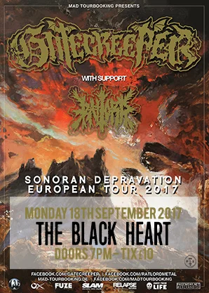 GATECREEPER Monday, September 18, 2017 7:00 PM 11:00 PM 19:00 23:00 Google Calendar ICS OLD EMPIRE presentsGATECREEPERplus special guestsRATLORDTix £10 adv BUY TICKETS