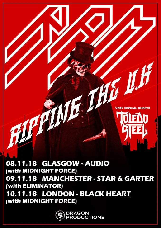 Joining RAM on their Ripping the UK tour is Southampton's heavy metal warriors Toledo Steel. Kicking off the night Midnight Force will be making the journey from Glasgow, Scotland to deliver the goods.