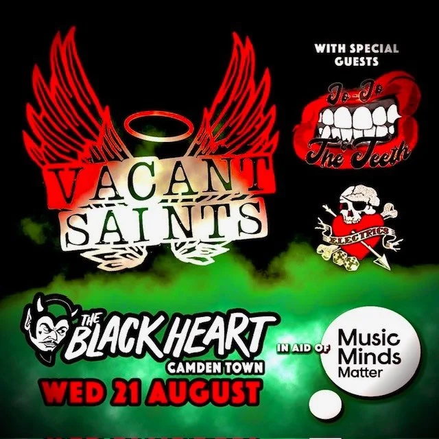 VACANT SAINTS rocks with special guests Jo-Jo & The Teeth plus the Electrics in aid of charity MUSIC MINDS MATTER - ALL ticket proceeds to the charity entirely funded by music lovers which offers 24/7 support for EVERYONE in the music industry.