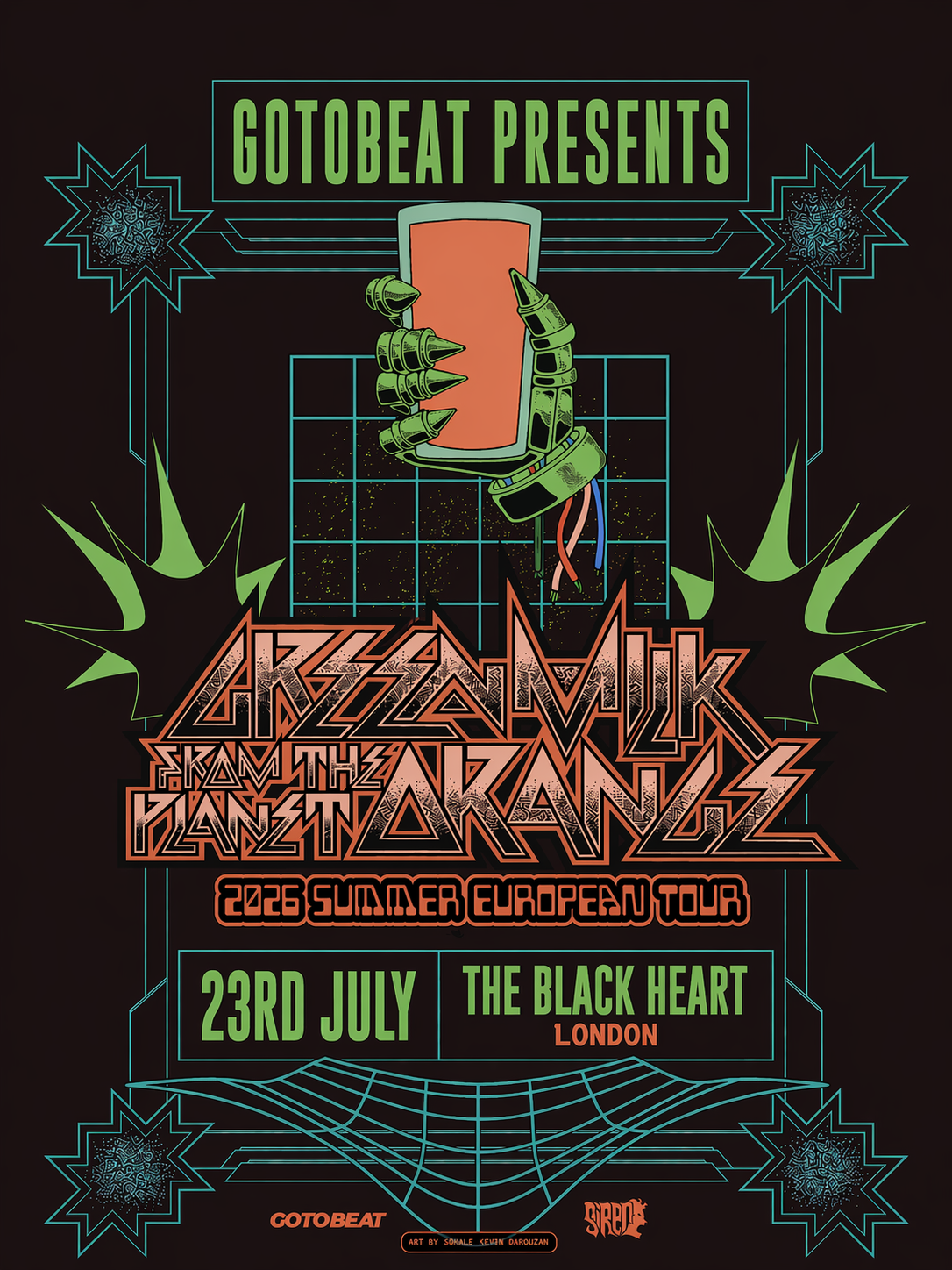 GREEN MILK FROM THE PLANET ORANGE Thursday, July 23, 2026 7:00 PM 11:00 PM 19:00 23:00 The Black Heart 2 Greenland Place London, England, NW1 United Kingdom (map) Google Calendar ICS buy tickets Gotobeat presents GREEN MILK FROM THE PLANET ORANGEplus guests TBA