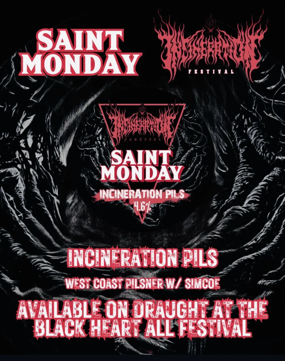 All this PLUS our very special one off SAINT MONDAY BREWERY INCINERATION pils on draught throughout, it’s gonna be a HELL of a weekend… we can’t wait! See ya at the bar 🍺